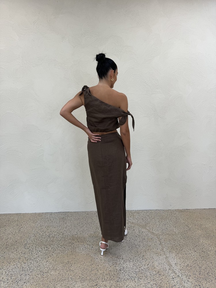 Bettina Tie Crop & Skirt Set in Chocolate