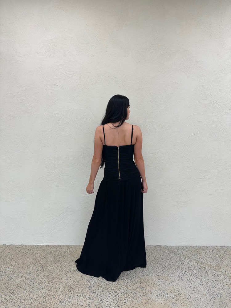 Double Time Pleat Dress in Black