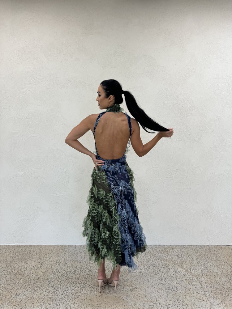 Kao Dress in Moss Green& Blue