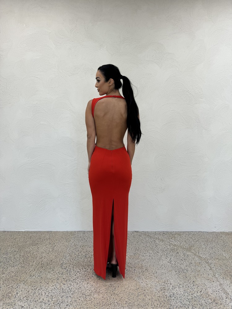 Cutout Backless Dress in Red